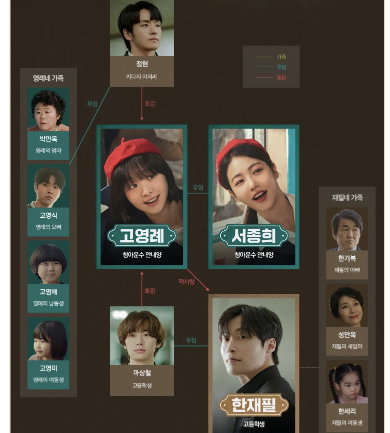 이 외에도 가족·동료·주변 인물들이 얽히며 다층적인 관계를 형성합니다.