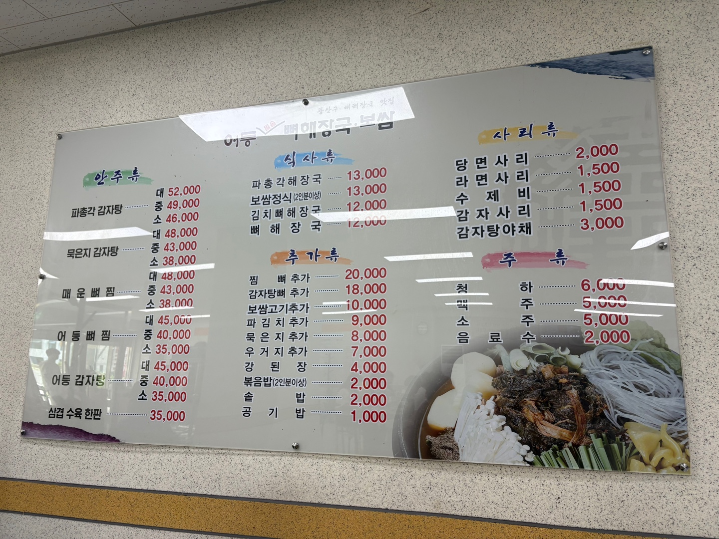 메뉴는 파총각해장국과 뼈해장국이 메인이고