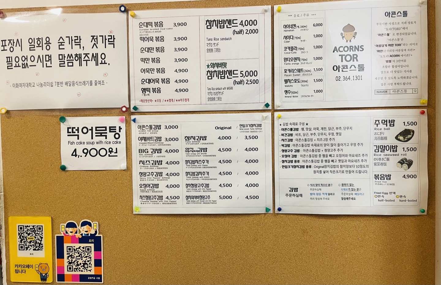 이대 신촌역 맛집 아콘스톨에 가면 김밥과 순대떡볶음은 꼭 먹어보세요~